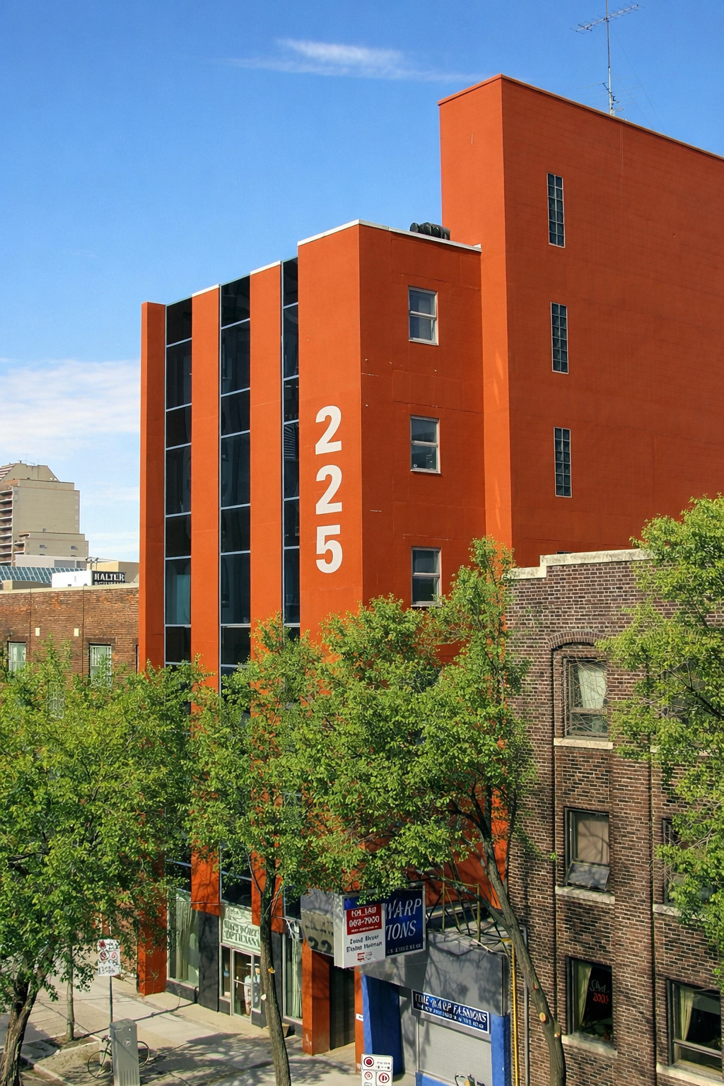 Construction is complete on the six-story, 38-unit mixed-use building at 225 Vaughan Street, MB. The development features modern residential apartments and a prime commercial space on the ground floor.